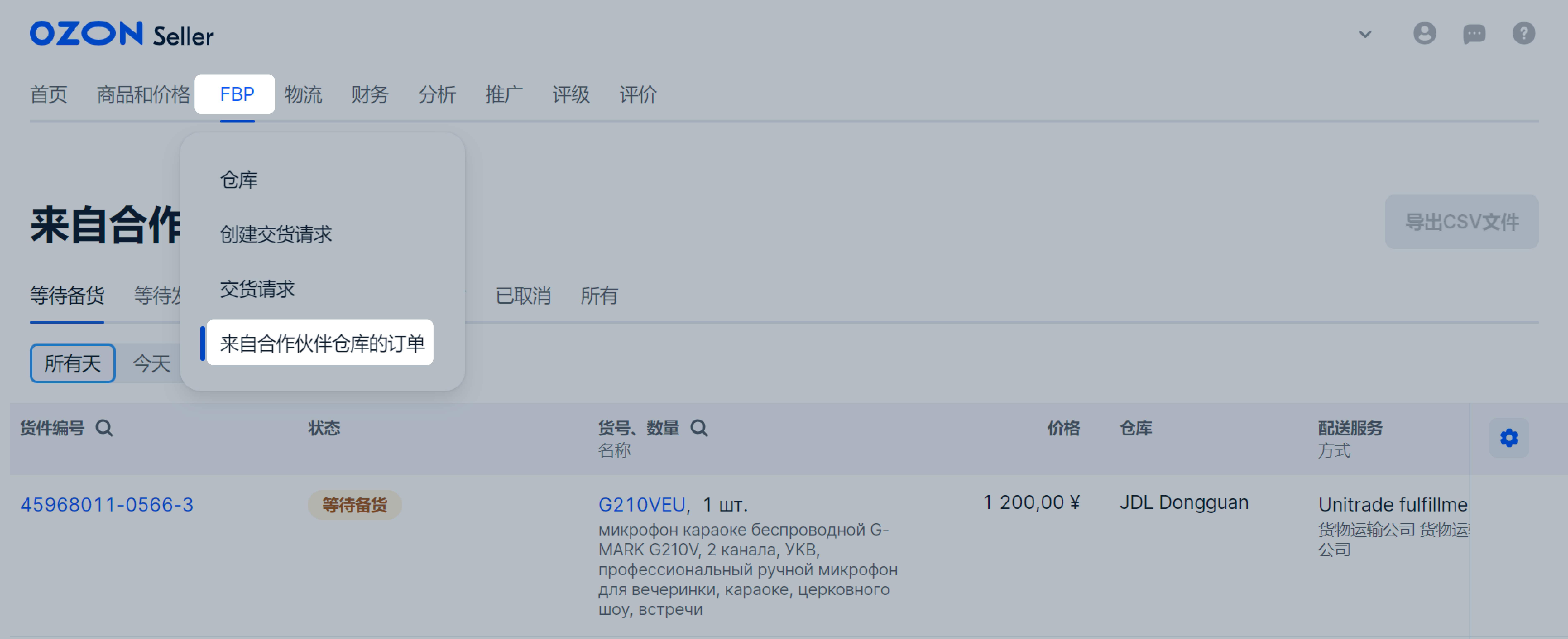 您可在个人中心FBP → 来自合作伙伴仓库的订单部分跟踪合作伙伴仓库订单。