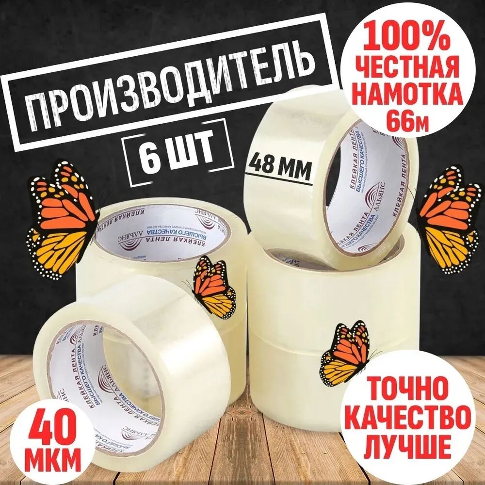 Скотч прозрачный Альянс клейкая лента 66м*6штук в упаковке ширина 48мм. Россия