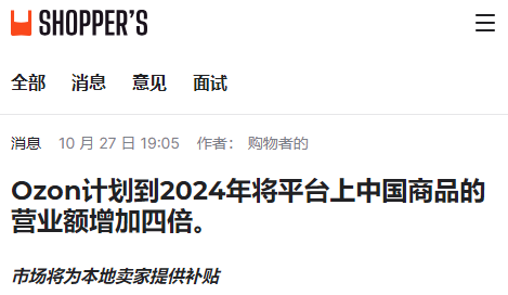 本文《销售额增长近3倍,Ozon中国卖家这次双11太猛了》观点不代表俄罗斯卖家网立场,不承担法律责任,文章及观点也不构成任何投资意见。