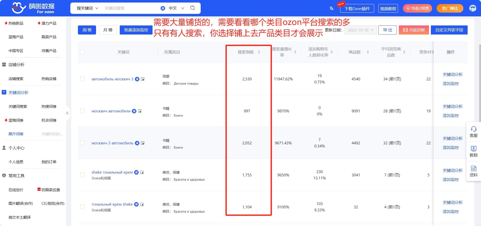 注册免费体验ozon选品以及上货工具:点击👉萌啦OZON数据软件